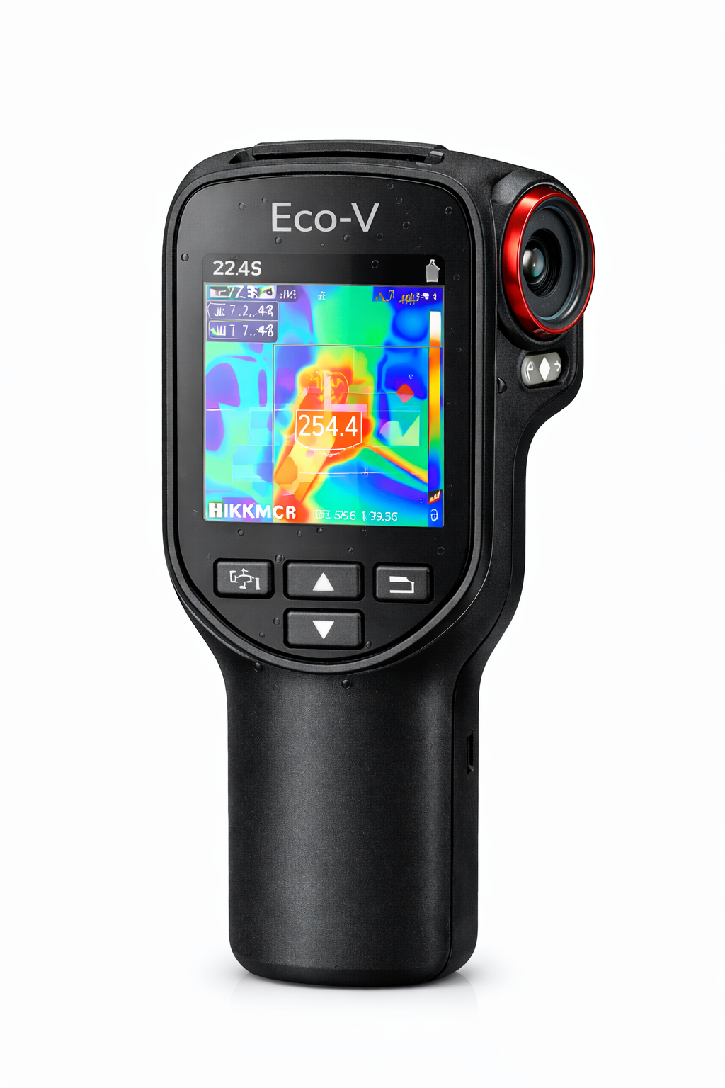 Cámara térmica compacta con enfoque en inspecciones visuales y térmicas para mantenimiento industrial y aplicaciones de campo.